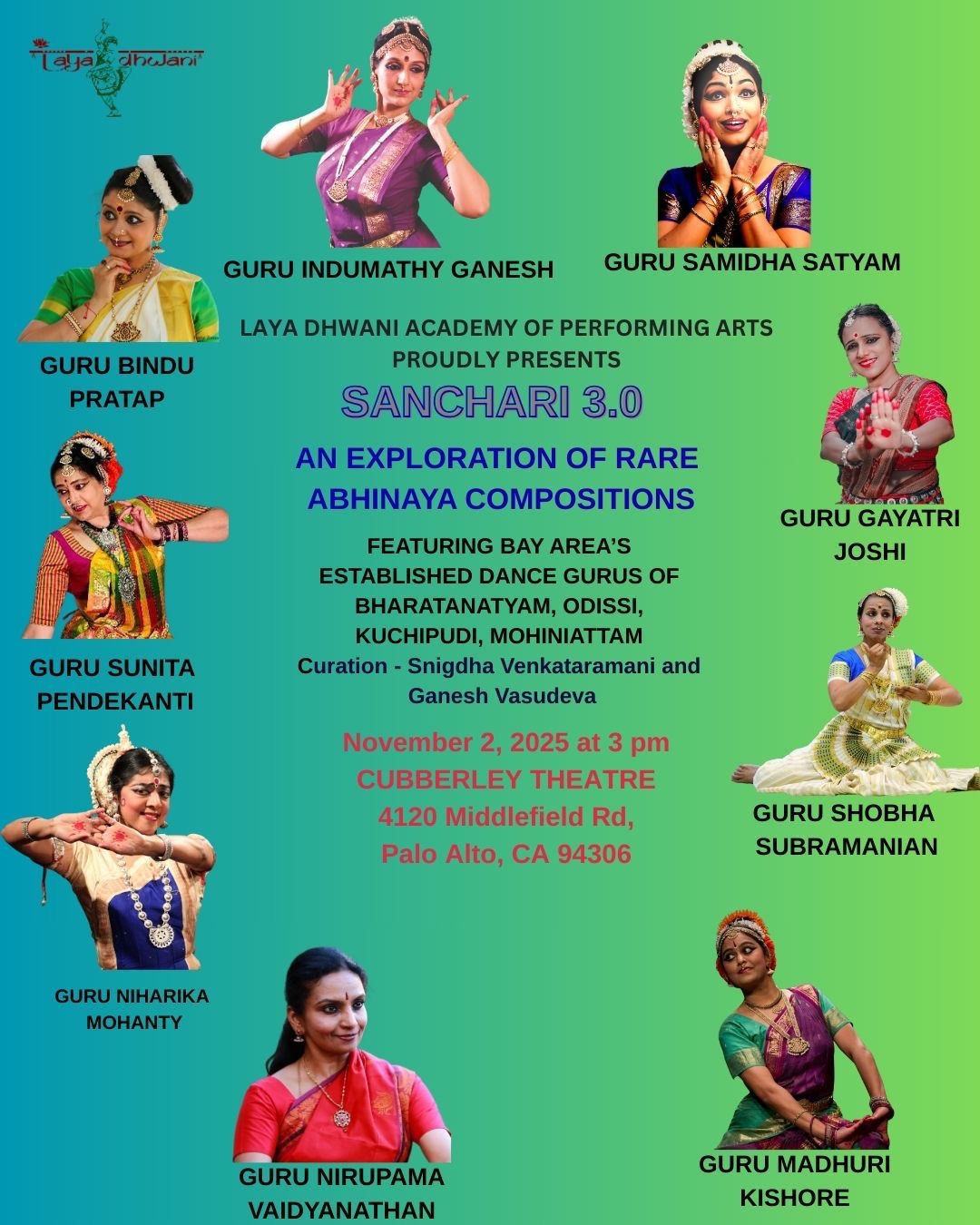 Director Niharika Mohanty will be performing an ashtapadi from Jayadev’s Gita Govindam for Sanchari 3.0 at Cubberley Theatre on November 2nd.